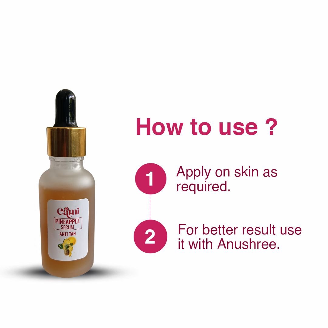 Cami Pineapple Serum is a refreshing skincare formula enriched with pineapple extracts that helps reduce tan, brighten skin tone, and restore a natural glow.
